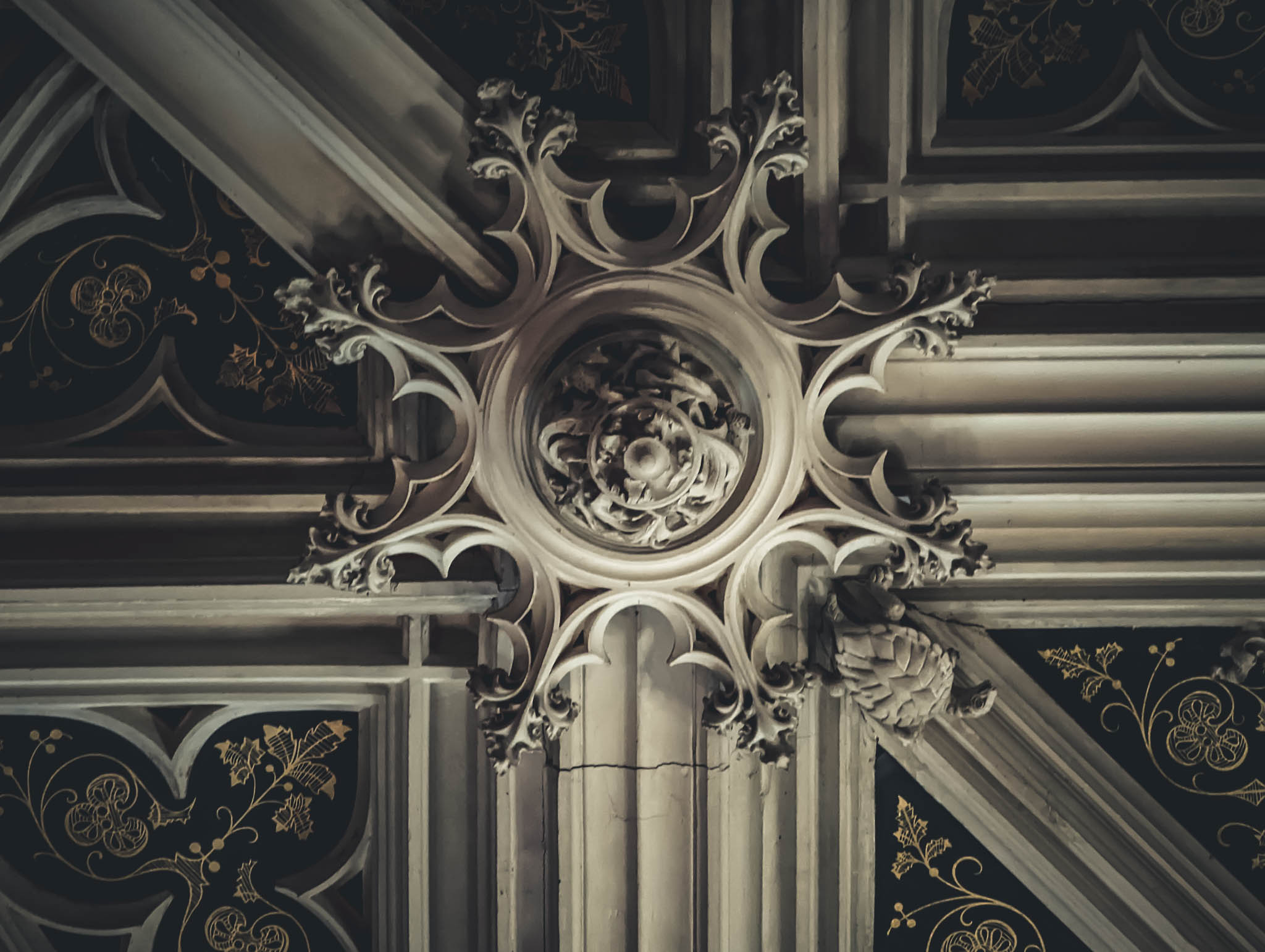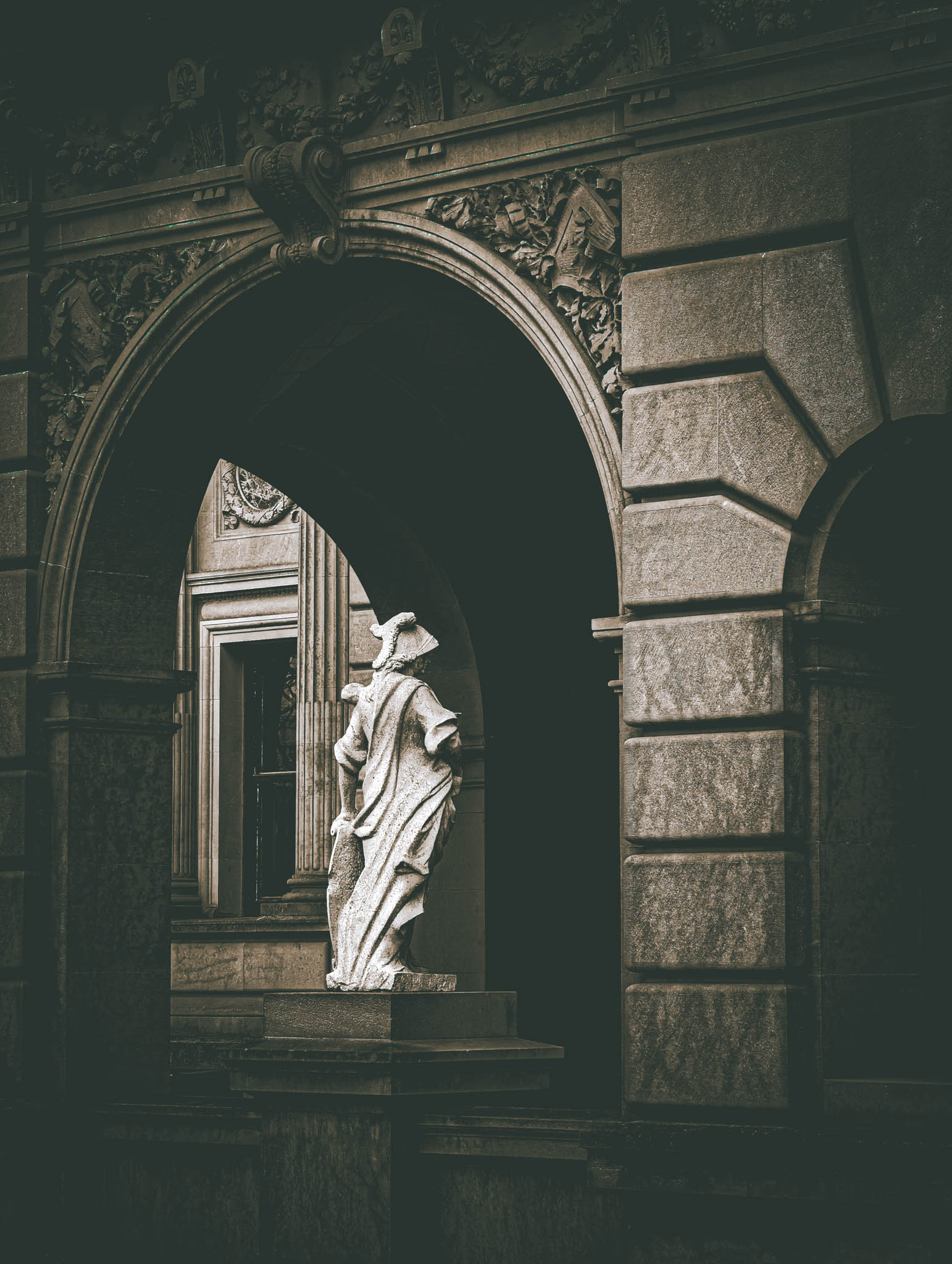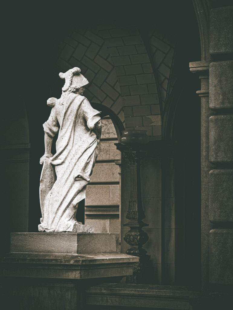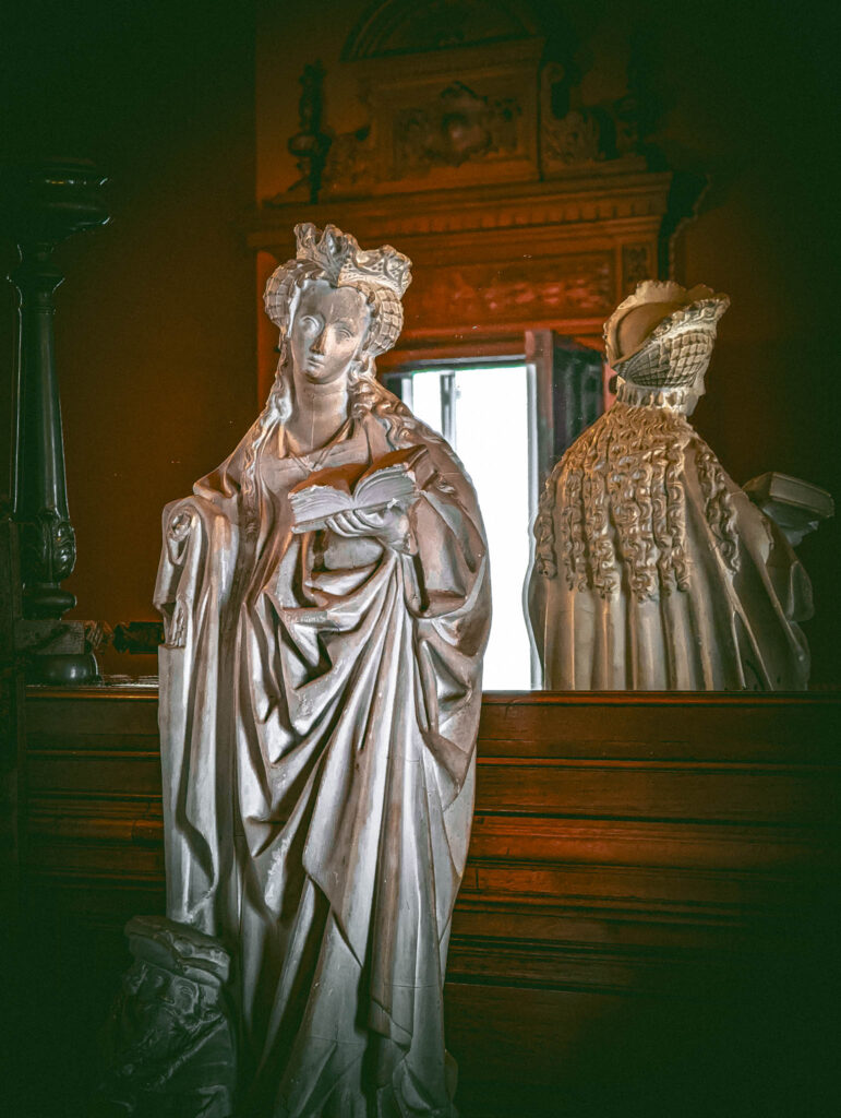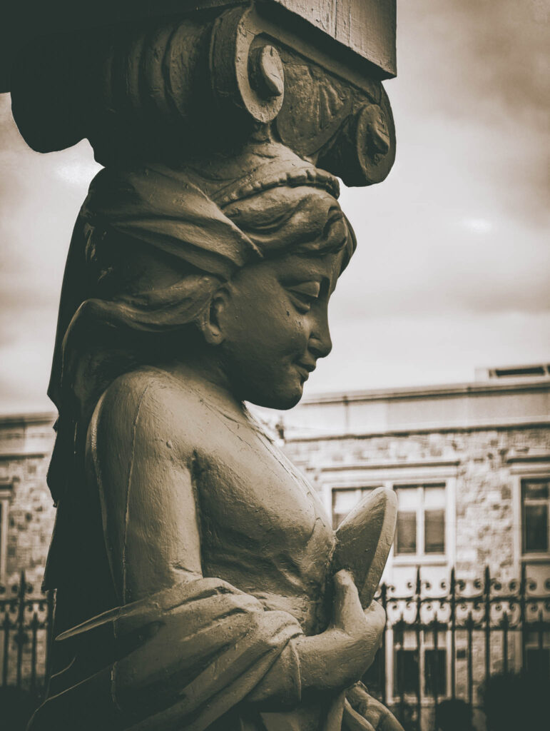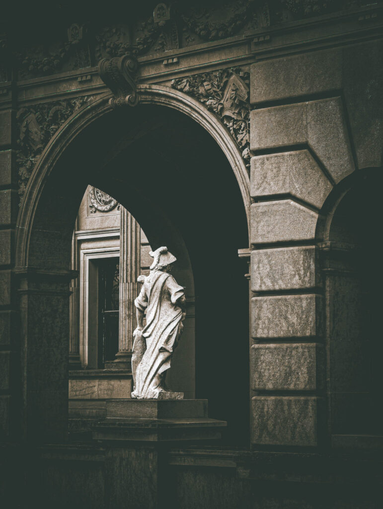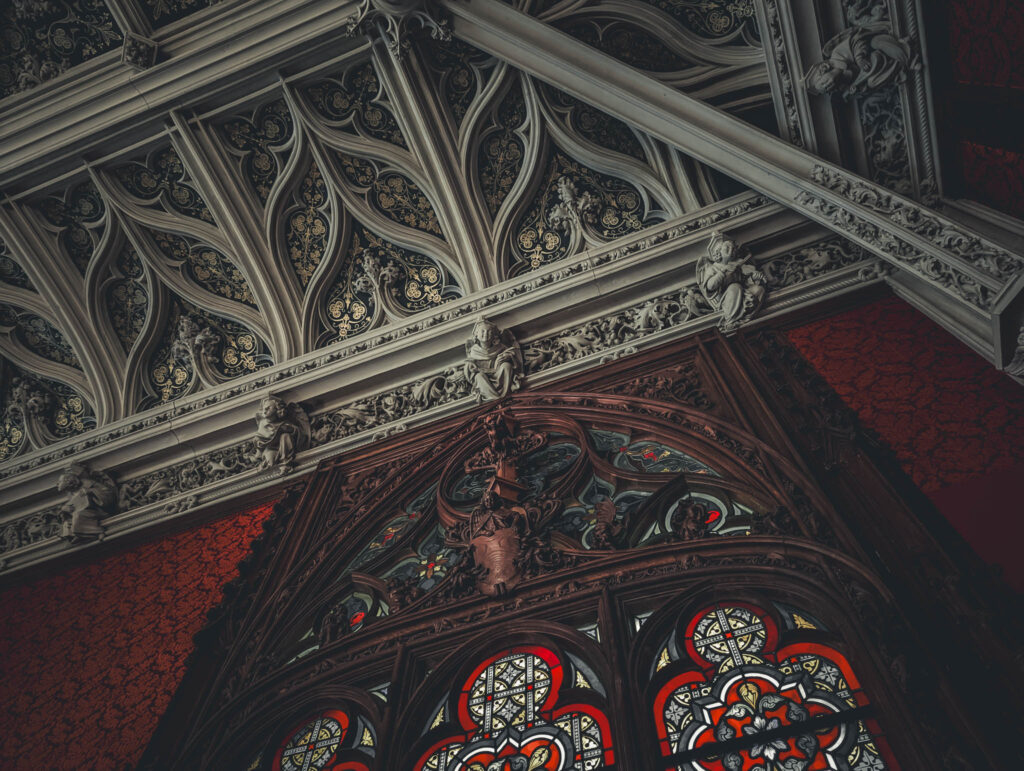 At least Commodore Vanderbilt’s grandkids left the houses for (ultimately) others to admire. Also, my high-hat reflexes aside: there is a quirky melancholy, or even a hint of damnation, in all these gloriously-proportioned and gilded chambers. Faces painted, cast, or carved — many of them smiling but others grim or despairingly lost — are everywhere, leaning out from frames or urns or light-fixtures. And the mirrors! In the reflections it seems my camera caught a more desolate version of reality, cracks in the plaster, rich tints fading to powdery-pastels, spaces as empty and lonely as a foreclosed ruin. This odd sepulchral tinge — was it always there? Does it just “come” with the over-the-top Beaux-Arts? Or did it accumulate over the brief century of Vanderbilt decline since?