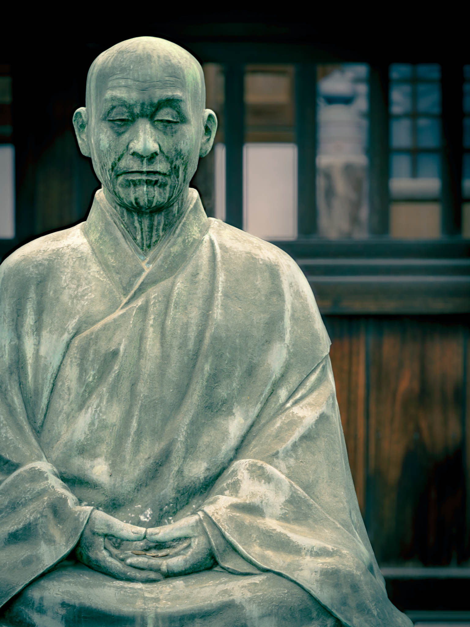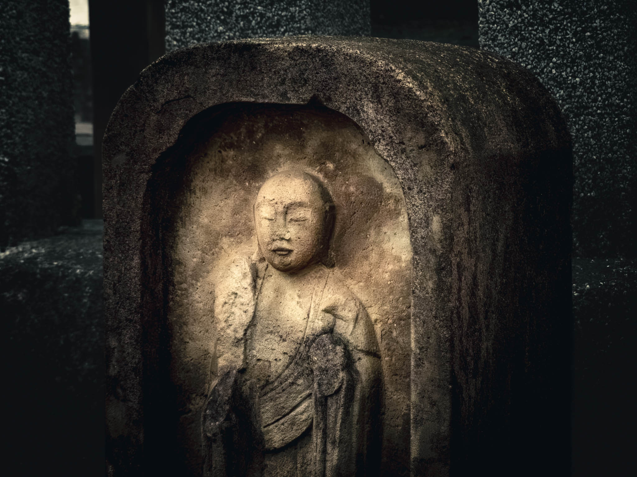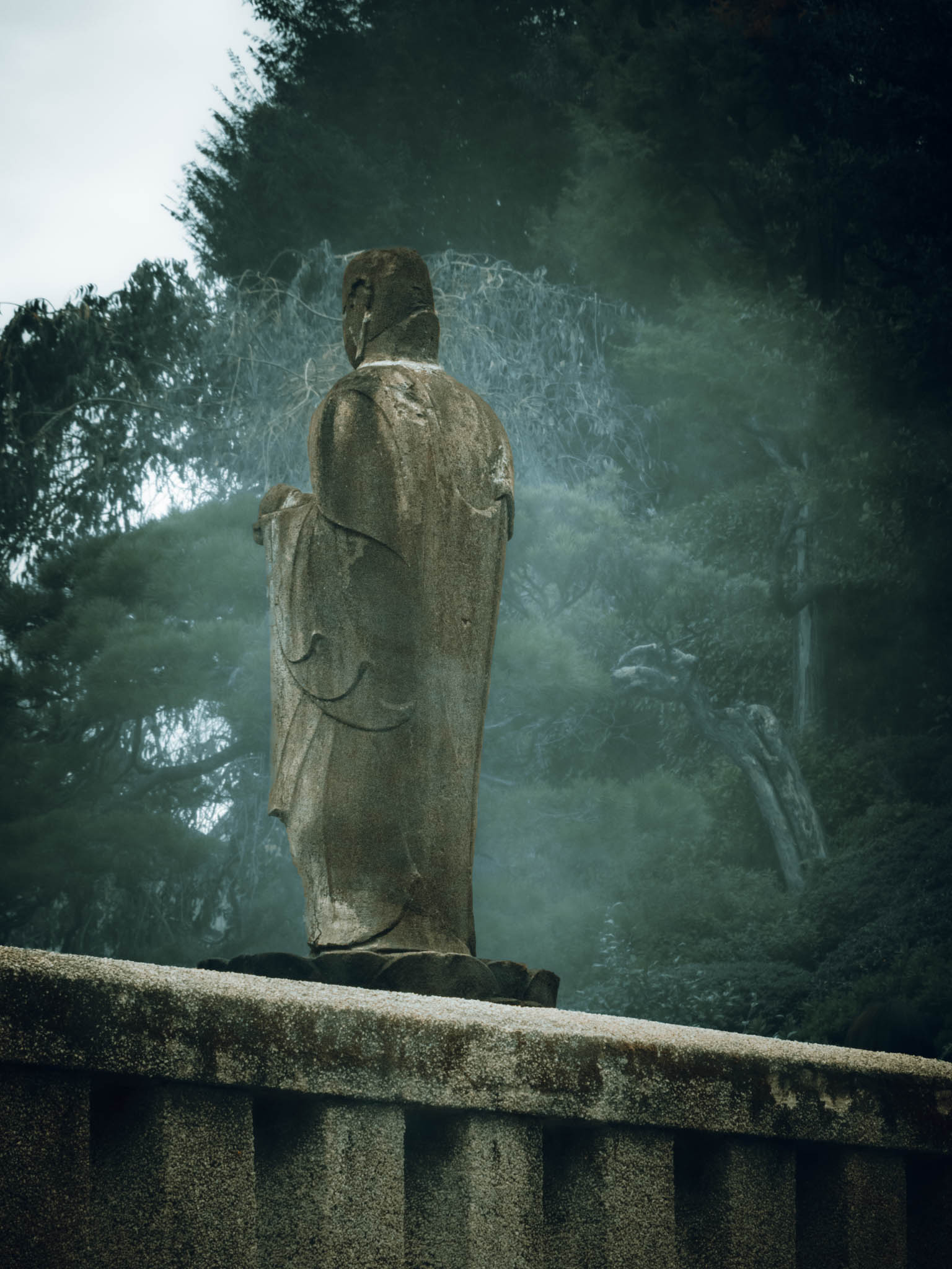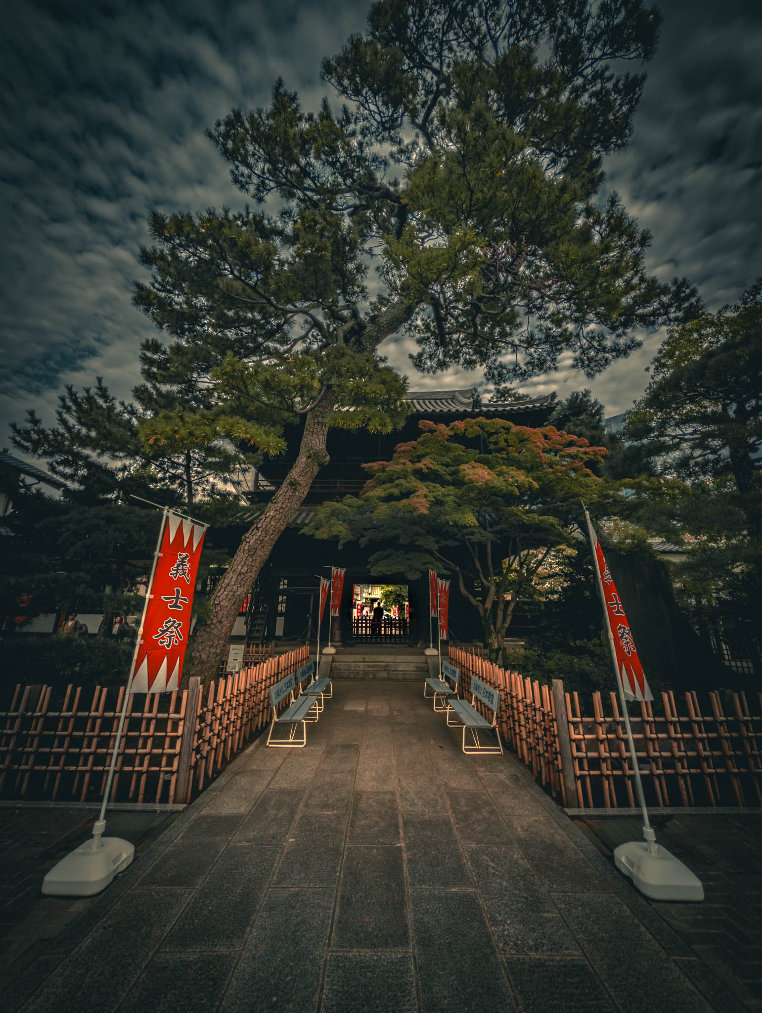So reasonably, one should place two of the little burning sticks in front of each monument. Circulating among the graves and through the drifting bluish scented clouds of smoke in the growing shadows, I found myself preoccupied with anxiety that I was going to run out sticks before I ran out of graves. Had I “done” this monument — or that one — already? What if I short-changed one or more of the vengeful ronin? Would they be offended?