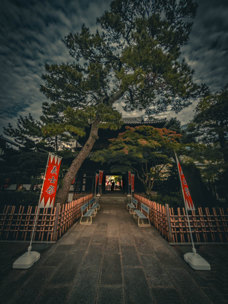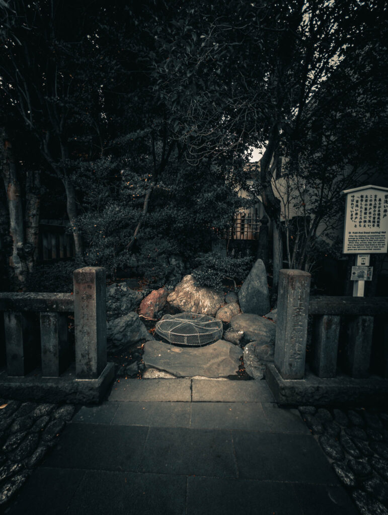 Late in the afternoon — it always seems to be late afternoon for me, if not actually twilight — I finally had a chance to visit Senkaku-ji and the graves of the famous Forty-Seven Ronin, the Ako Gishi, who waited two years before staging a covert attack on the mansion of Kira Kozukenosuke, the shogunal official whose insults allegedly led their proud young daimyo Asano Naganori in 1701 to commit a capital crime by drawing his dagger within Edo Castle.