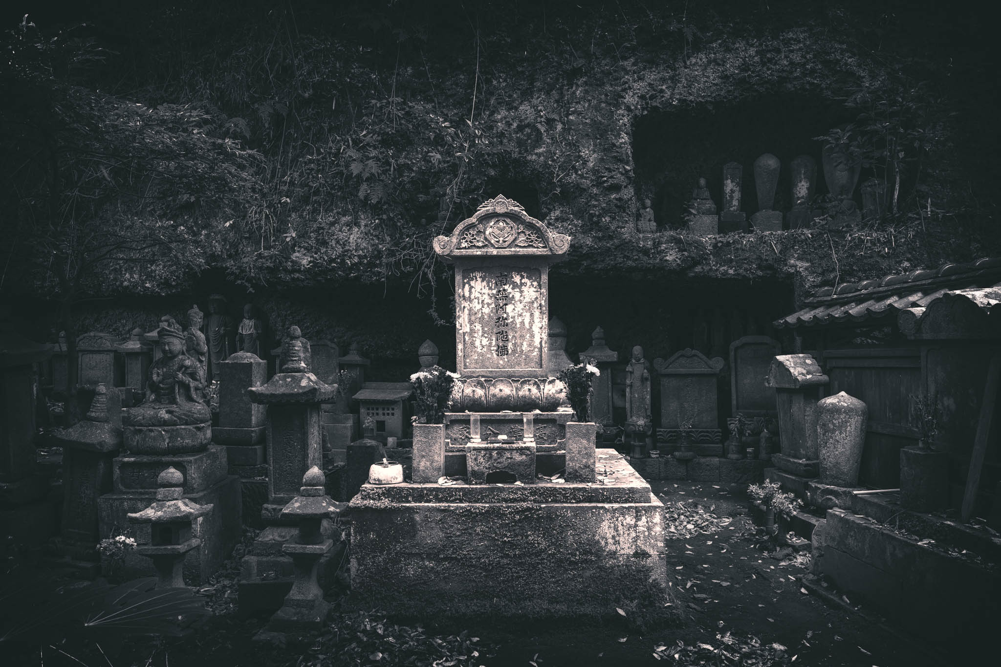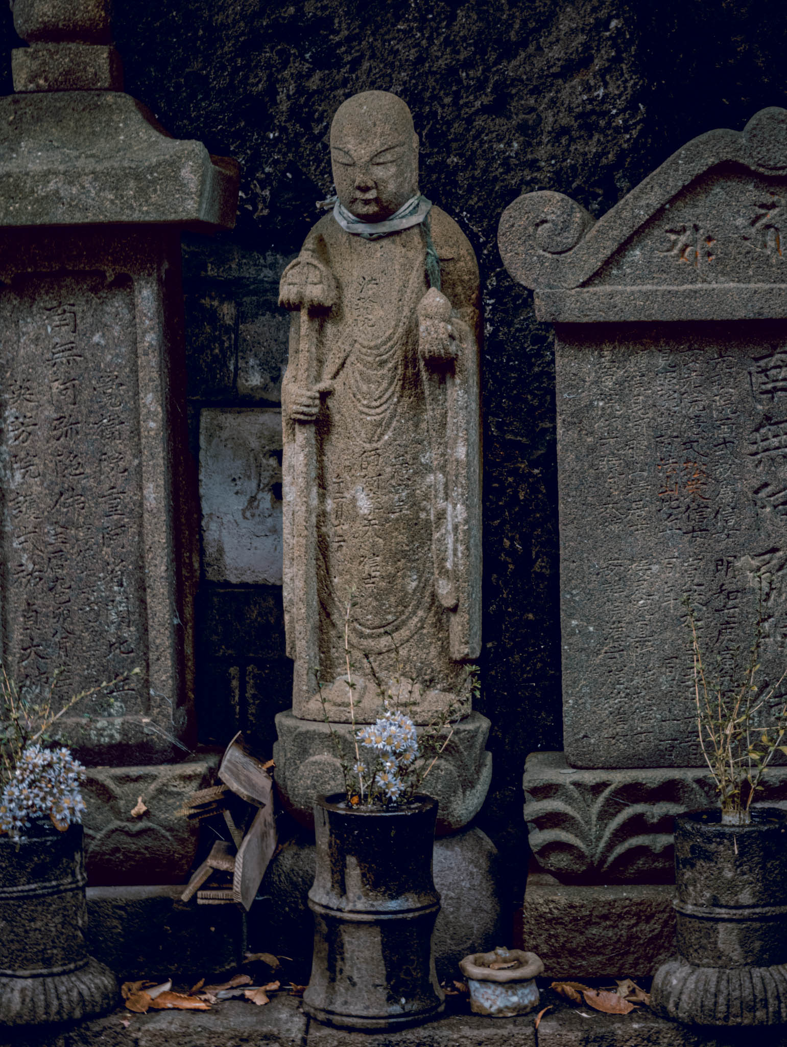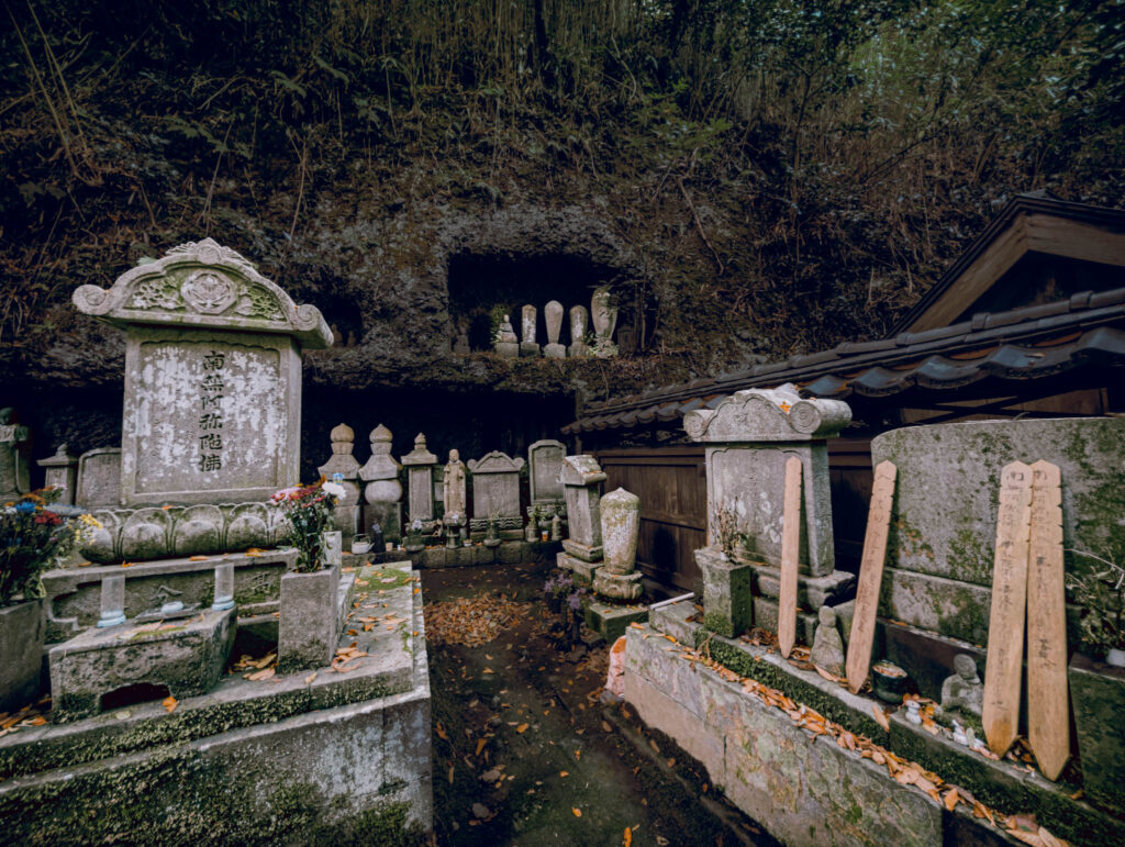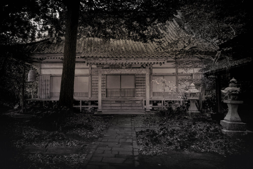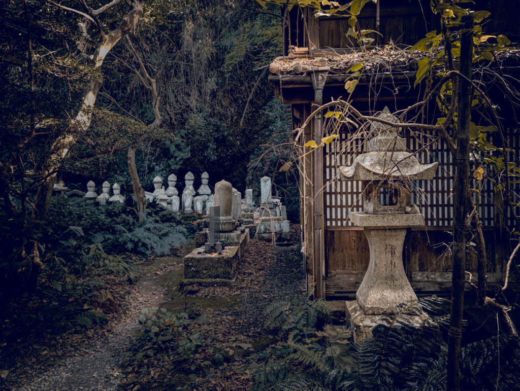 There’s a trope in Japanese photography that I generally think of as “Lafcadio Hearn-Land”: the ruined temple; the unweeded graveyard at twilight; the tottering memorials; the Jizo statue rain-washed faceless; the moss growing on the tiled roof; and so forth, gloomily. It’s imagery straight out of Hearn’s 1904 Kwaidan — or at least it is assumed so.