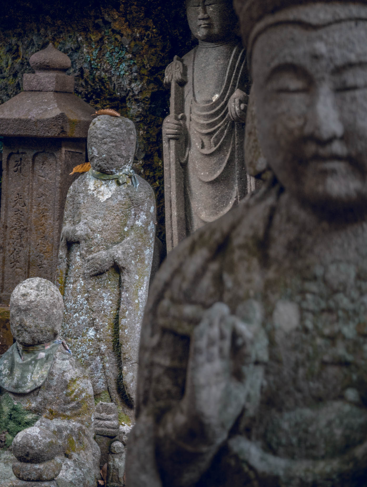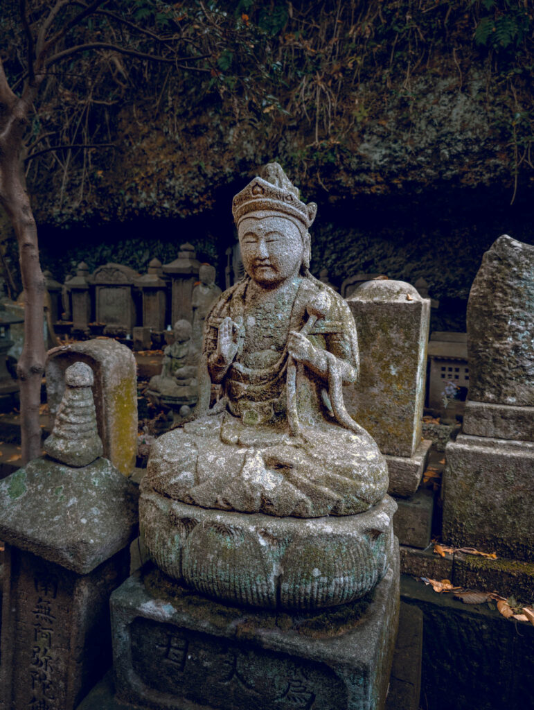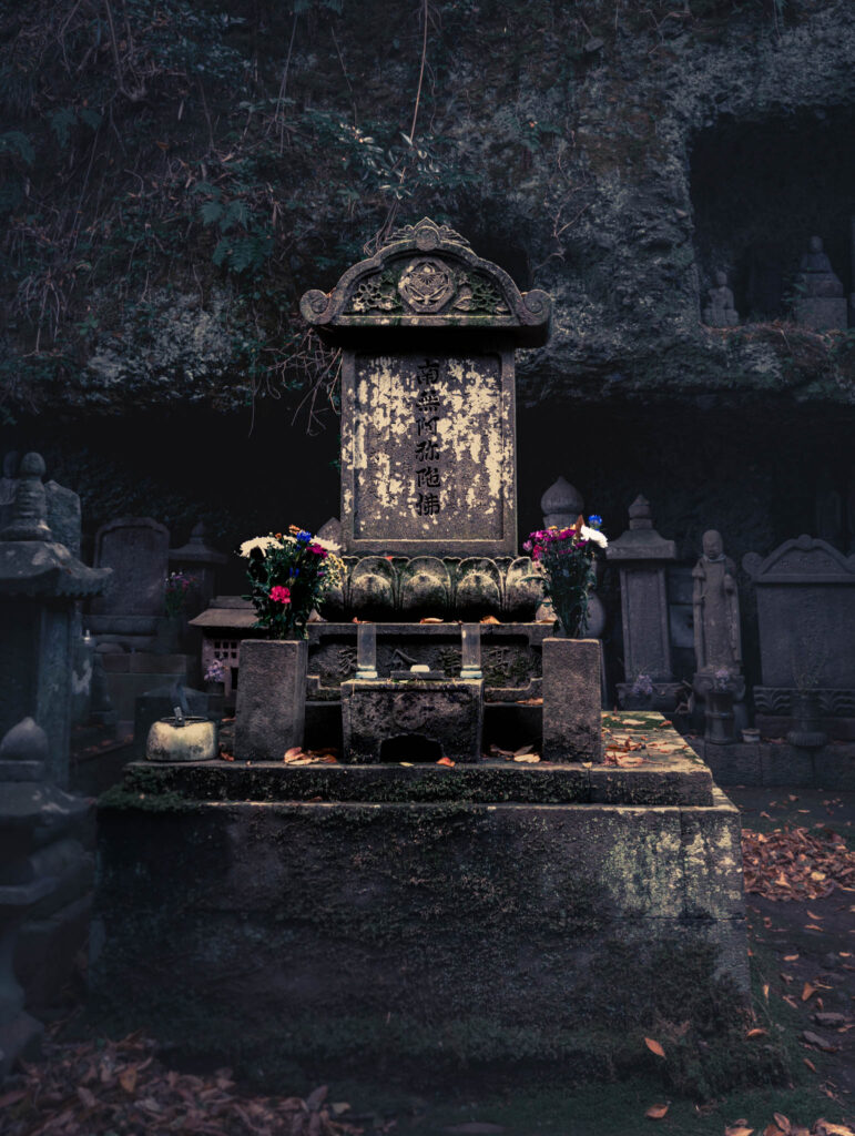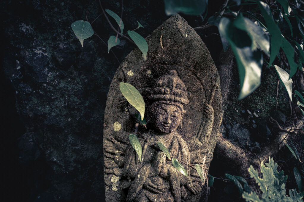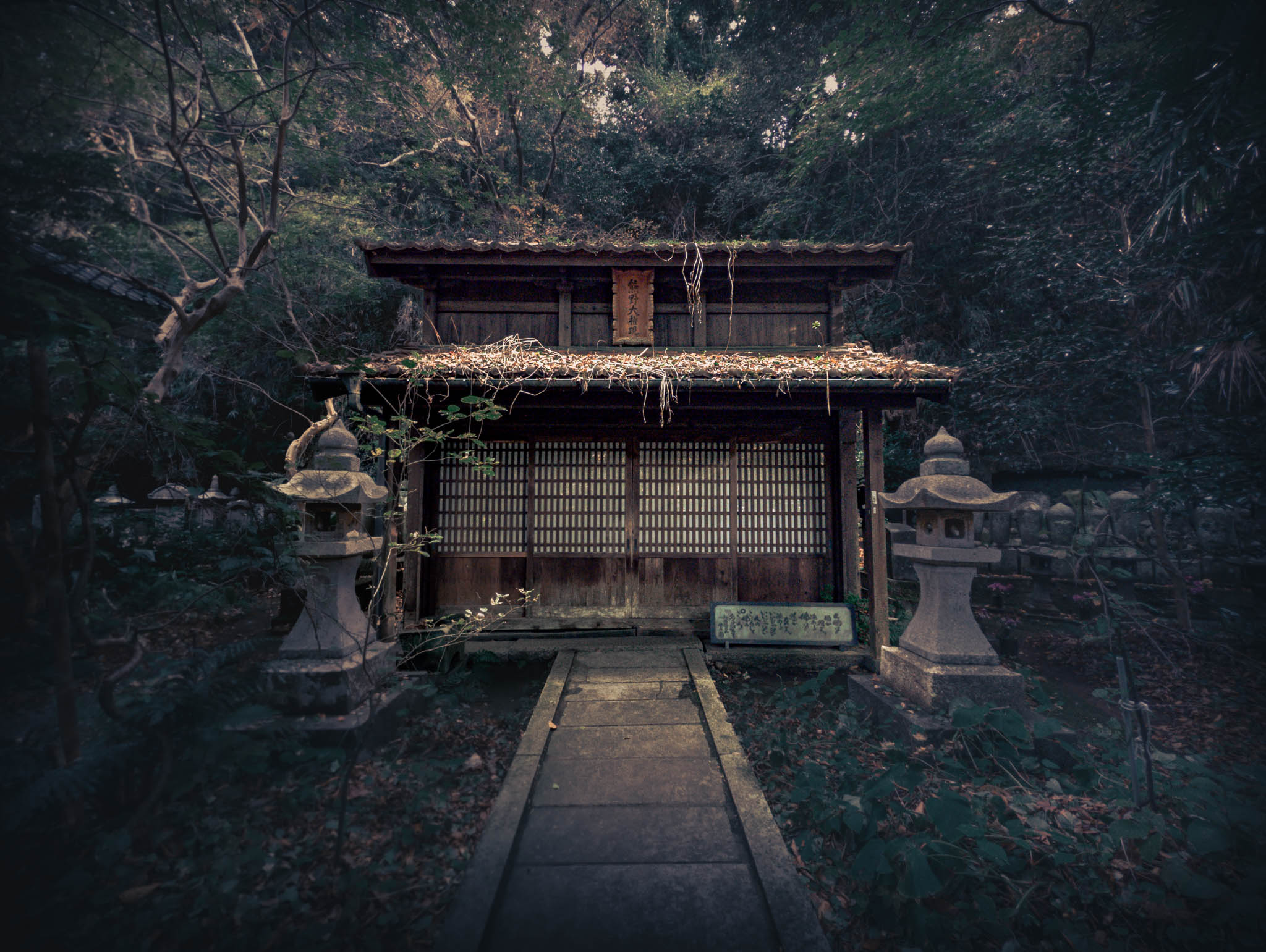 There’s a trope in Japanese photography that I generally think of as “Lafcadio Hearn-Land”: the ruined temple; the unweeded graveyard at twilight; the tottering memorials; the Jizo statue rain-washed faceless; the moss growing on the tiled roof; and so forth, gloomily. It’s imagery straight out of Hearn’s 1904 Kwaidan — or at least it is assumed so.