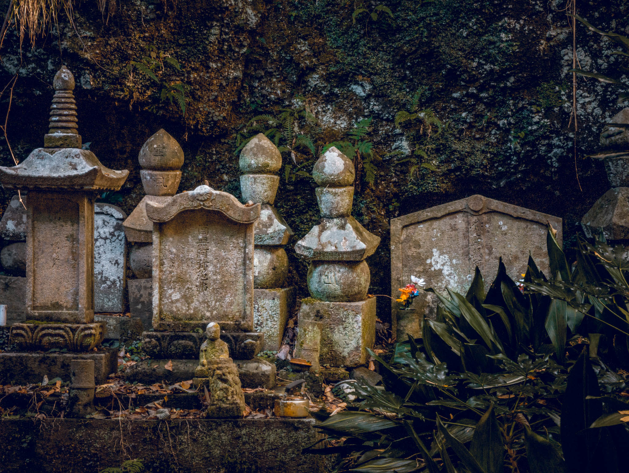 But that most famous collection of atmospheric Japanese ghost stories (I keep a copy on my phone) does not include any set in a ruined temple or its accompanying decaying cemetery, as far as I can tell. The closest Hearn comes to that scene in an honest-to-God-ghost-story is with his version of the story of Hoichi the Ear-less, in which the palace where the blind musician imagines he recites The Tale of the Heike is revealed to be the graveyard of the slaughtered Heike faction and his audience their restless revenants.