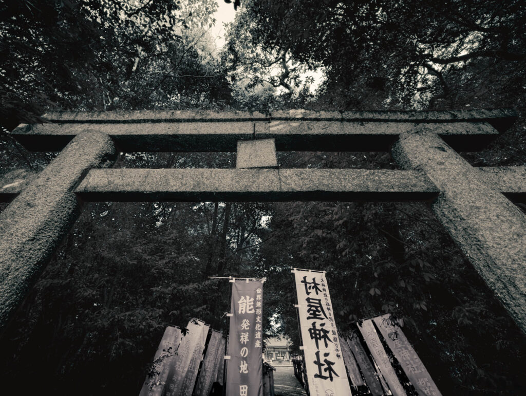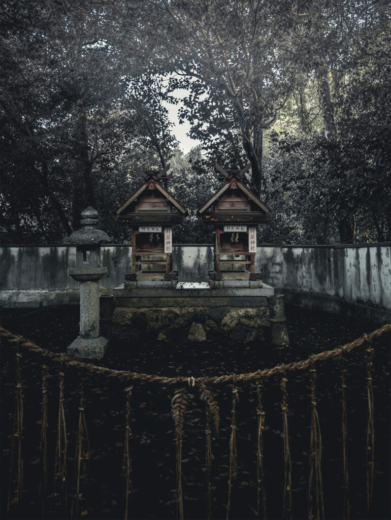 This is all the more confusing, because one of the precinct’s subsidiary shrines (to a pair of war gods) is clearly identified as “Muraya Shrine”. The deity of the principal shrine in any case is Princess Mihotsu or Mihotsuhime, the daughter of the primordial kami Takamimusubi no Mikoto. Although poorly documented in the usual ancient sources (according to the Japanese version of Wikipedia, which I carefully consult later in the day) she is a “heavenly deity”, who was forcibly married to the prominent “earthly deity” and divine lothario Ōkuninushi (a.k.a. Omononushi-no-Mikoto, also enshrined here) to insure the latter’s good behaviour after the kami of heaven forcibly annexed the earthly plane that Ōkuninushi had previously ruled.