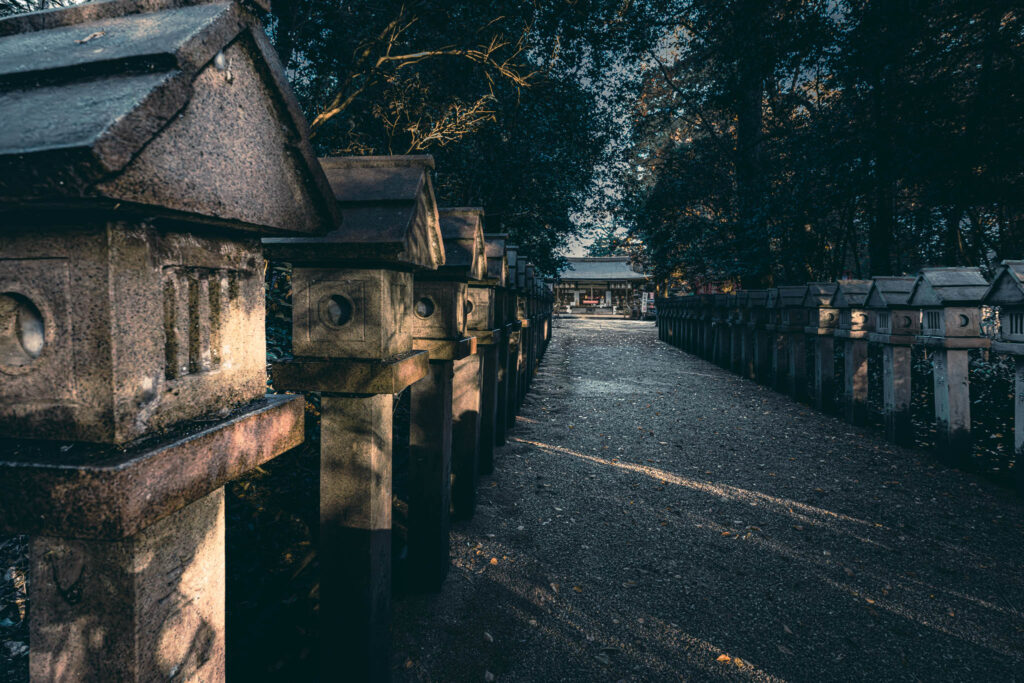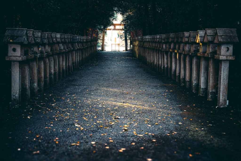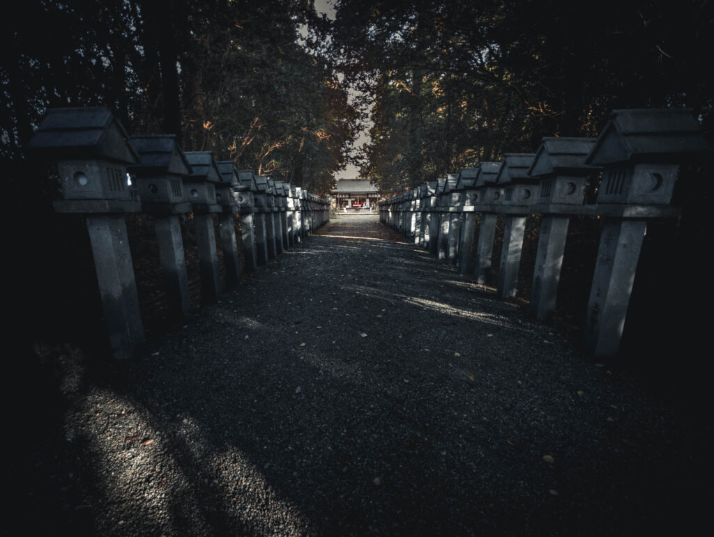 But I seem to have the precinct to myself at this time in the morning, and I’m nervous and feeling like a trespasser. Even though we are talking about the kami-equivalent of distantly historical Titans and Olympians, not the dryads and elemental-level of kami that one finds in other Shinto shrines, alone in the dawn I am troubled by a strange sense of the uncanny, that I have previously felt in more crowded locations near the shrines of lesser Shinto divinities. I feel that I am in danger of intruding on or interrupting a potentially-irritable Being busy with inscrutable tasks that I would not want to interrupt.