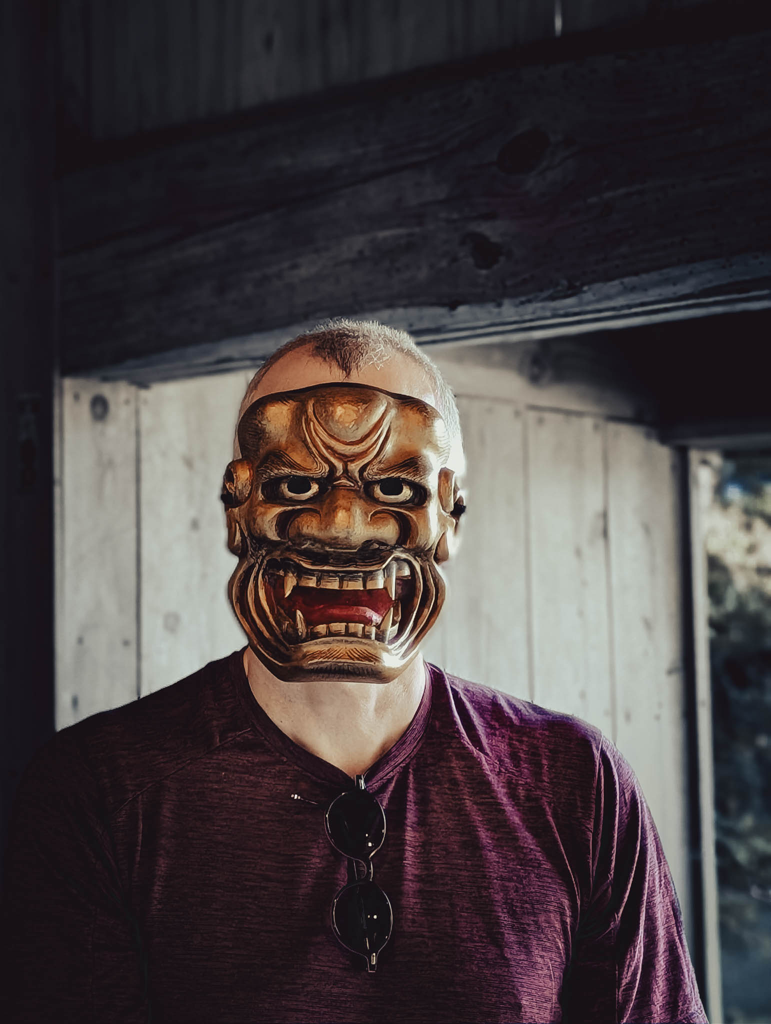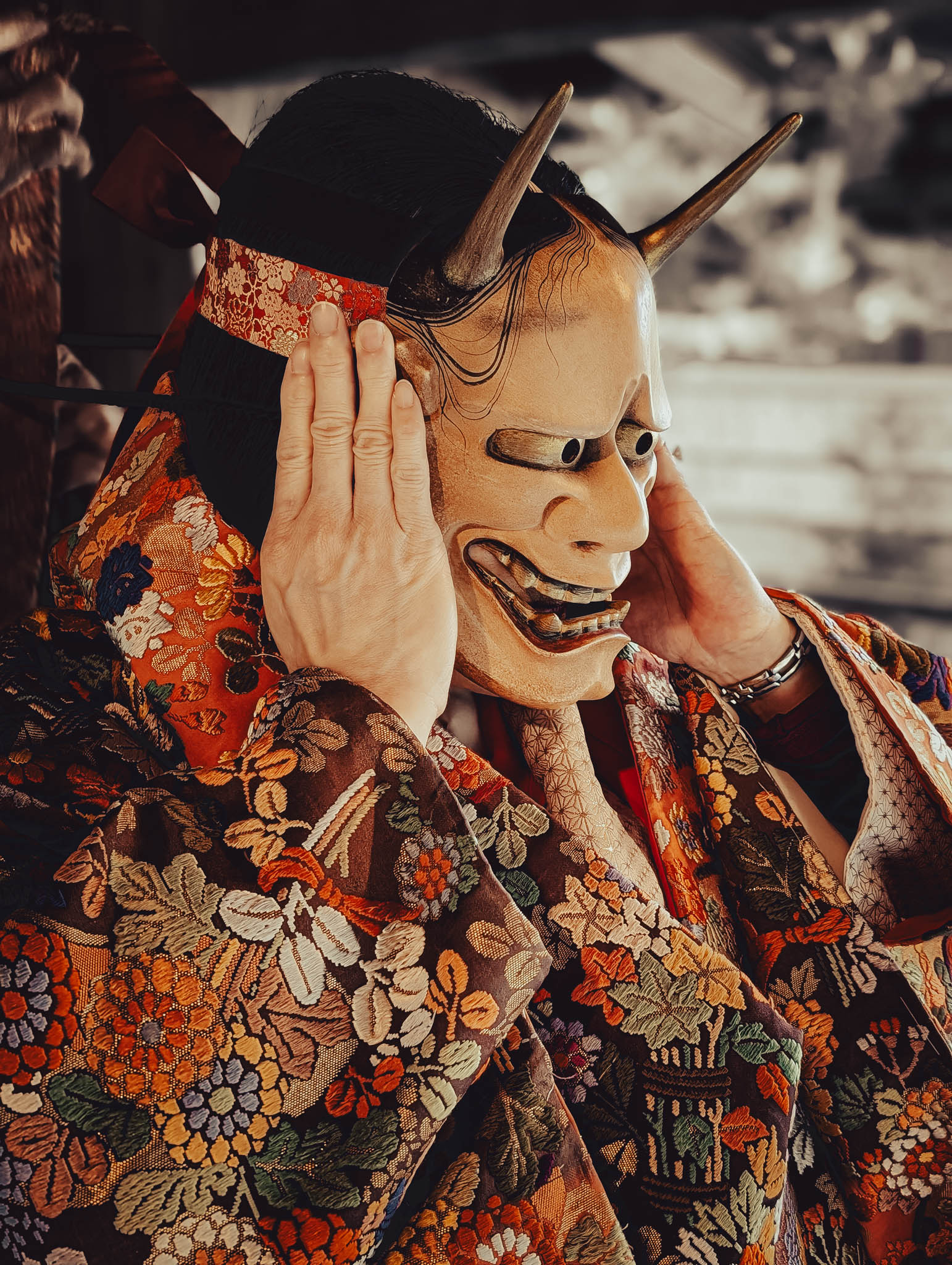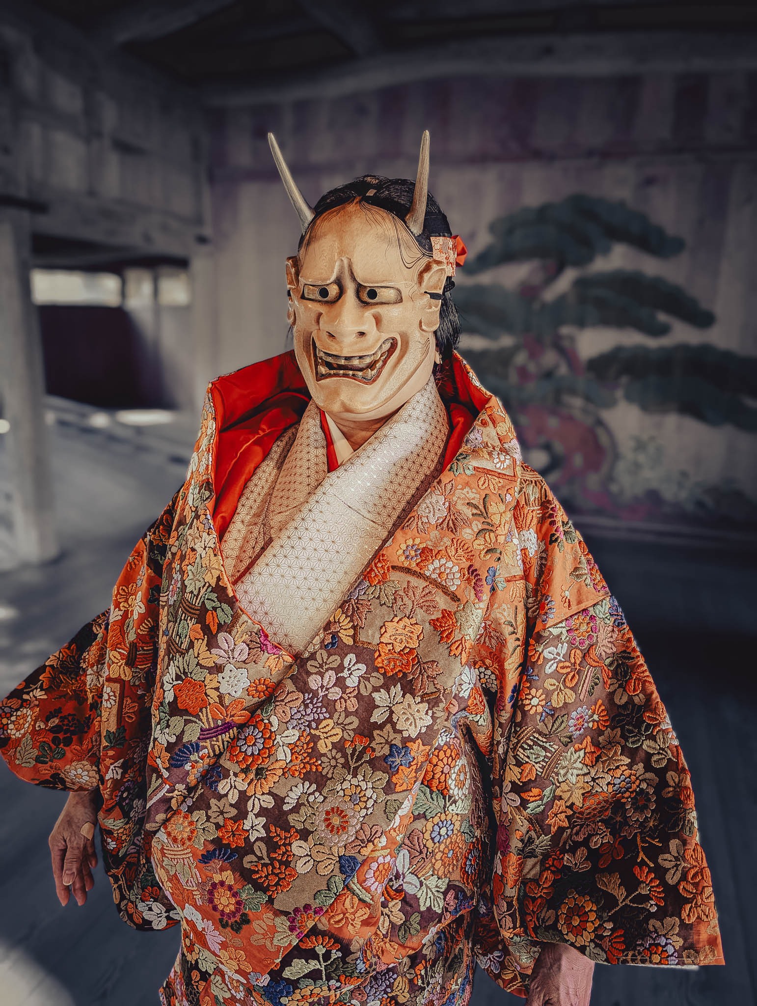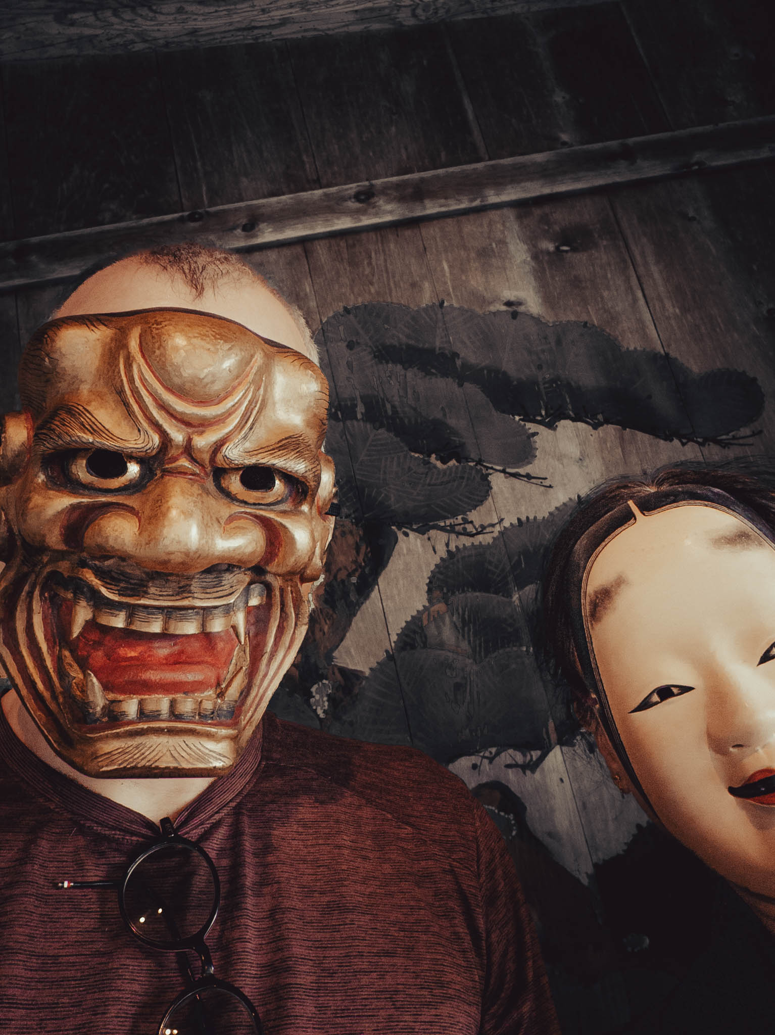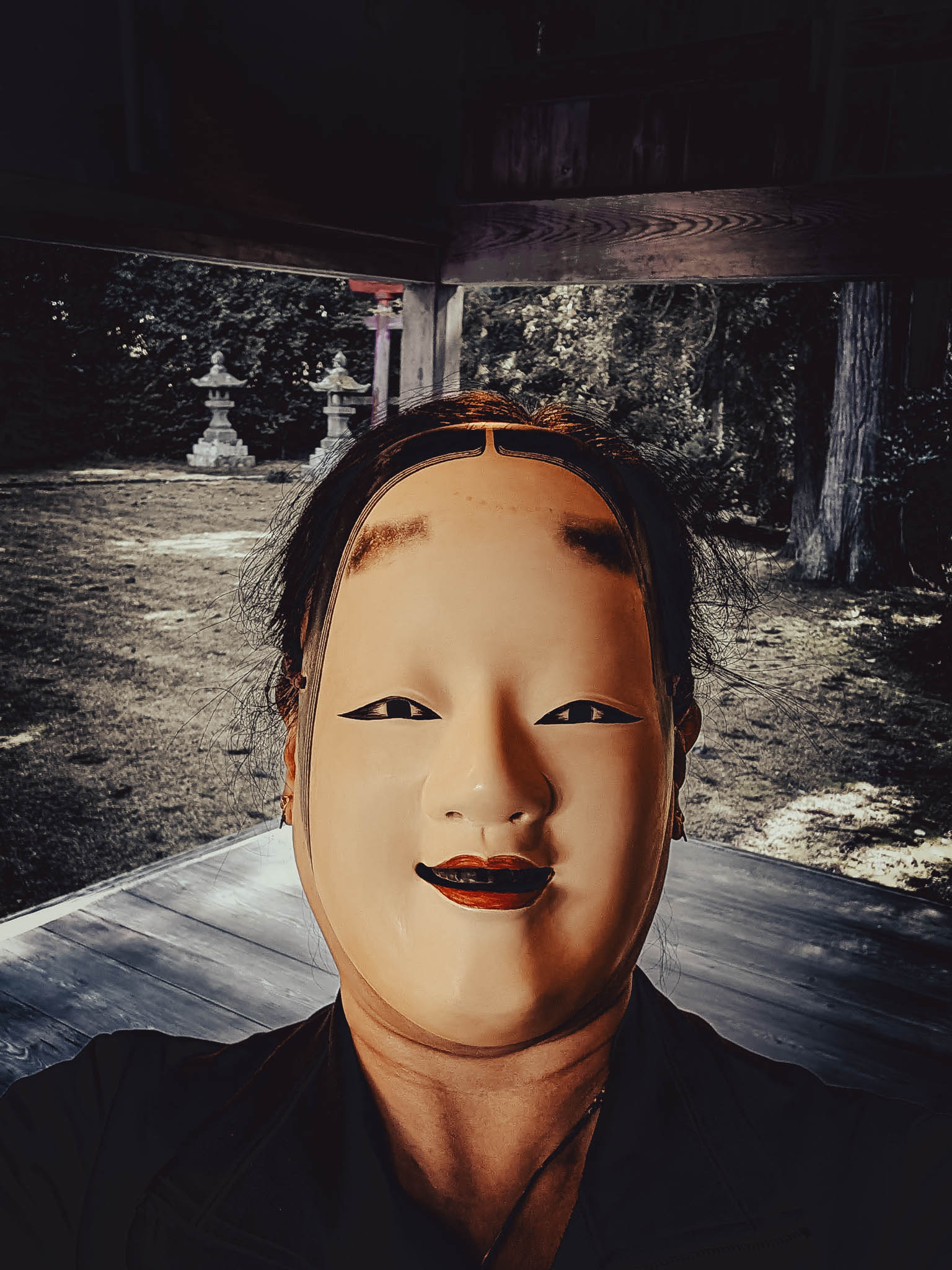 I found myself wondering — as I studied my smartphone selfie-mode image, as well as the masked visages of my fellow students — if behind the gilded and painted hinoki wood was anything like a real human face. More likely one would find a Studio Ghibli monster.