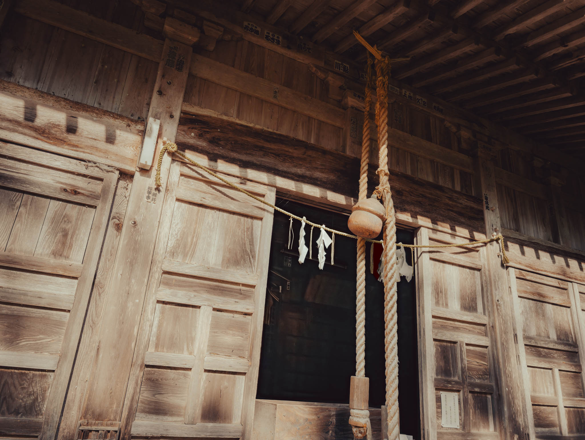 We didn’t really have time for that today on Sado, which happens to be the only place in modern Japan where Nō is still pursued as a sort of popular amateur theater as opposed to the rarified production of a particular pedigreed Iemoto-system “school”. But thanks to Atlas Obscura, we found ourselves for a few hours at the 大膳神社 “Daizen Shrine” — dedicated to the kami of food as well as Suketomo Hino (a counselor of defeated Emperor Go-Daigo exiled to Sado in the early 14th century) and the priest Daizenbo (who was executed for enabling the escape of the Suketomo’s son), ah! Japan and its epic history! — which also adjoins an ancient thatch-roofed Nō stage last rebuilt in 1846. That makes it, supposedly, the oldest on Sado. The enthusiastic Nōgaku sensei (a local farmer, in everyday life) brought a box of antique Nō masks and other props, for a quick and confusing lesson in Nō performance.