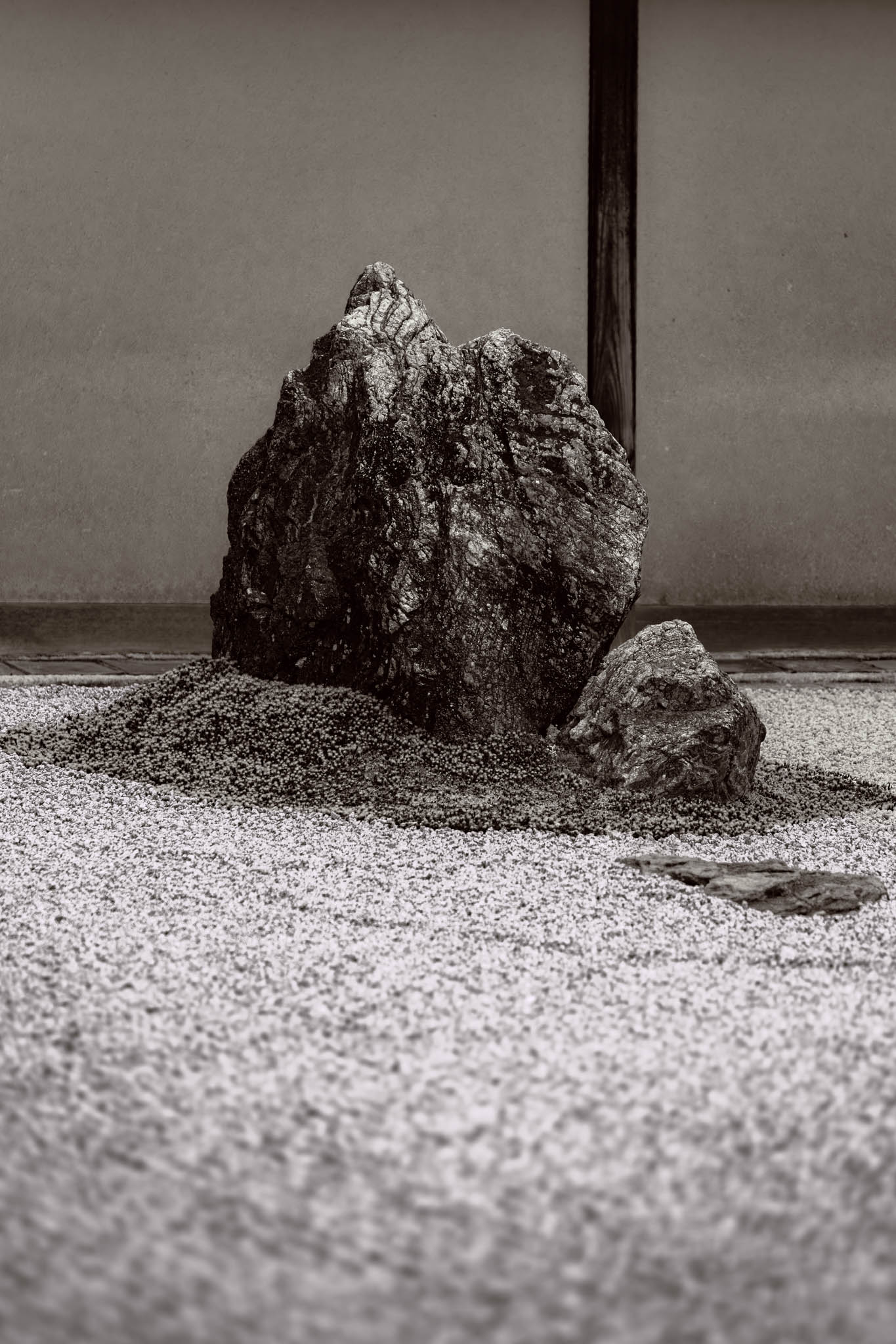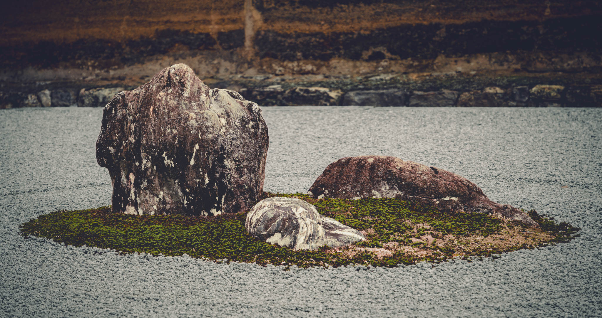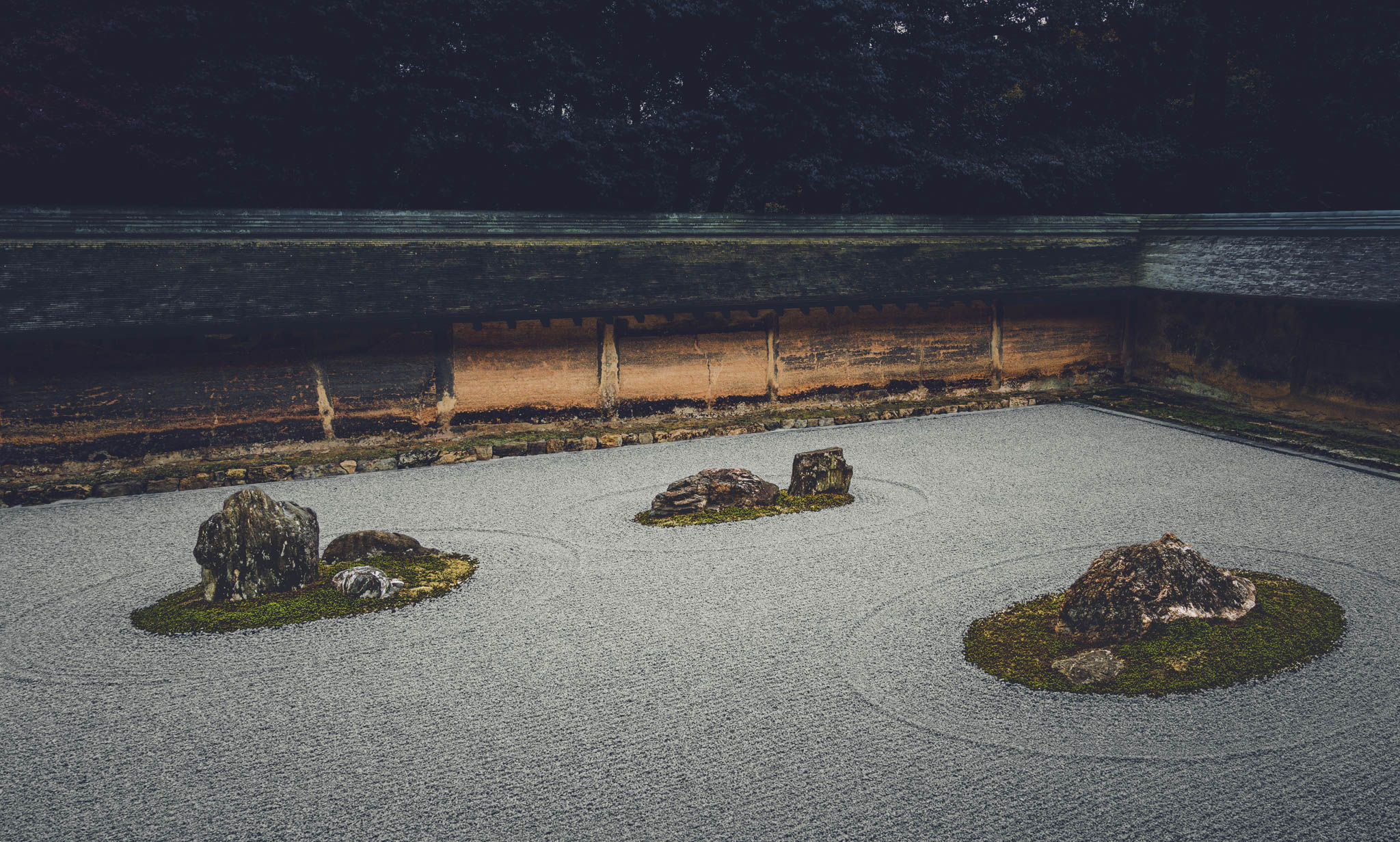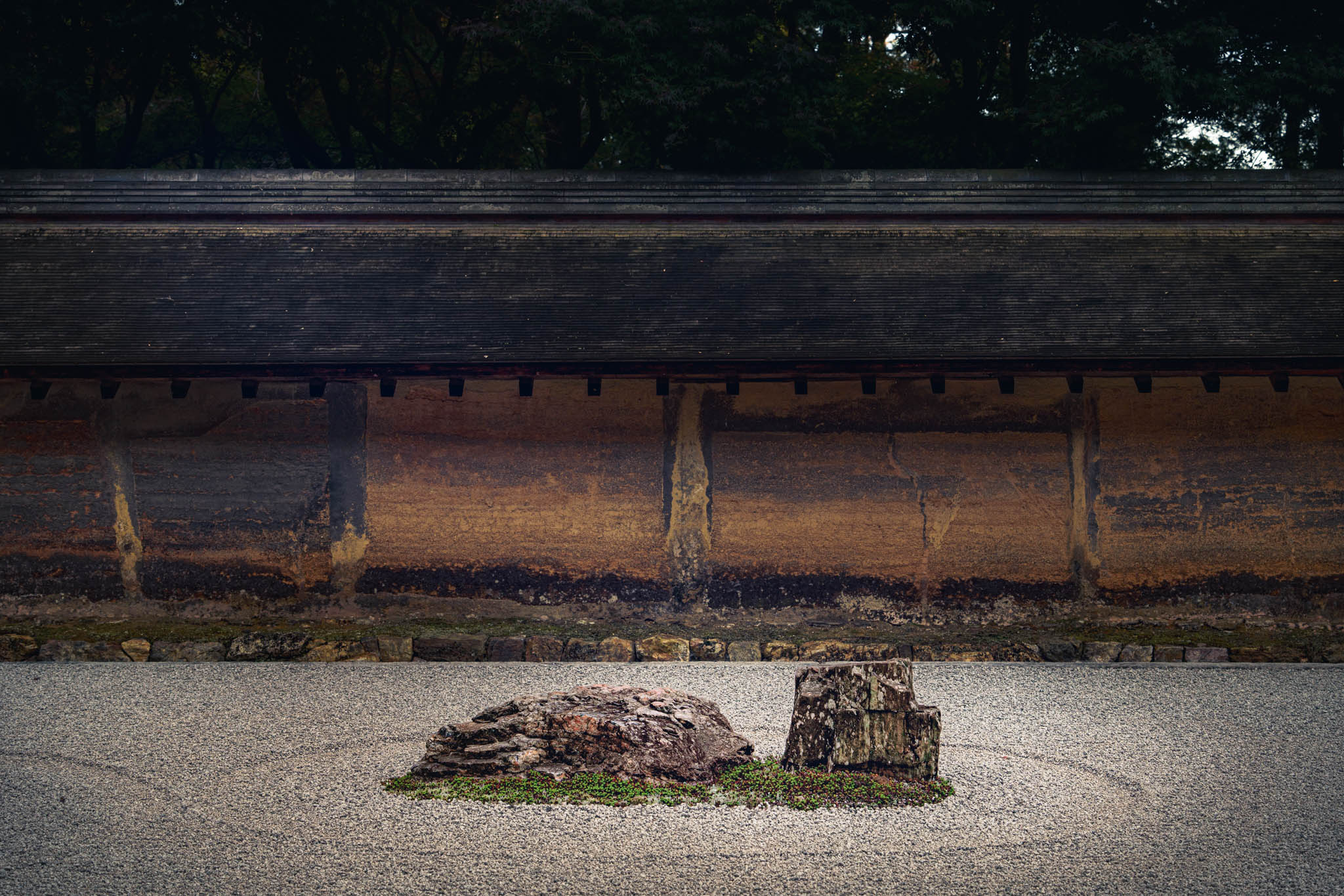 In any case, isn’t the whole point of Zen, as a branch of Mahayana Buddhism, to convince oneself through the elaborate non-rational apparatus of 参禅 sanzen, 座禅 zazen, and 公案 koan that Nothing-with-a-capital-N really matters or really exists at all — including oneself — so as to cross that soteriological event horizon and avoid the endless hellish cycle of rebirth? In other words: to come up with a wayto irrevocably snuff it? So why would anyone who wanted to be a good Zen Buddhist care that much for a garden, even a not-really-a-garden garden of waste rock and gravel surrounded by a wall of oily mud (which, when phrased like that, doesn’t sound very nice anyway)?