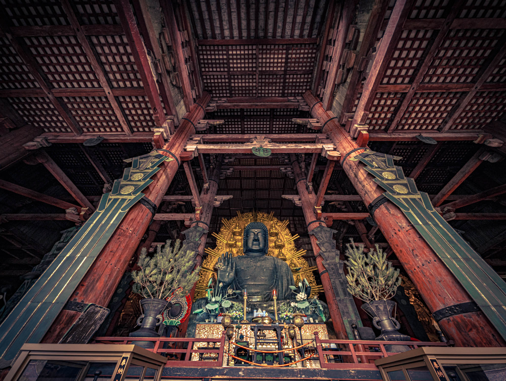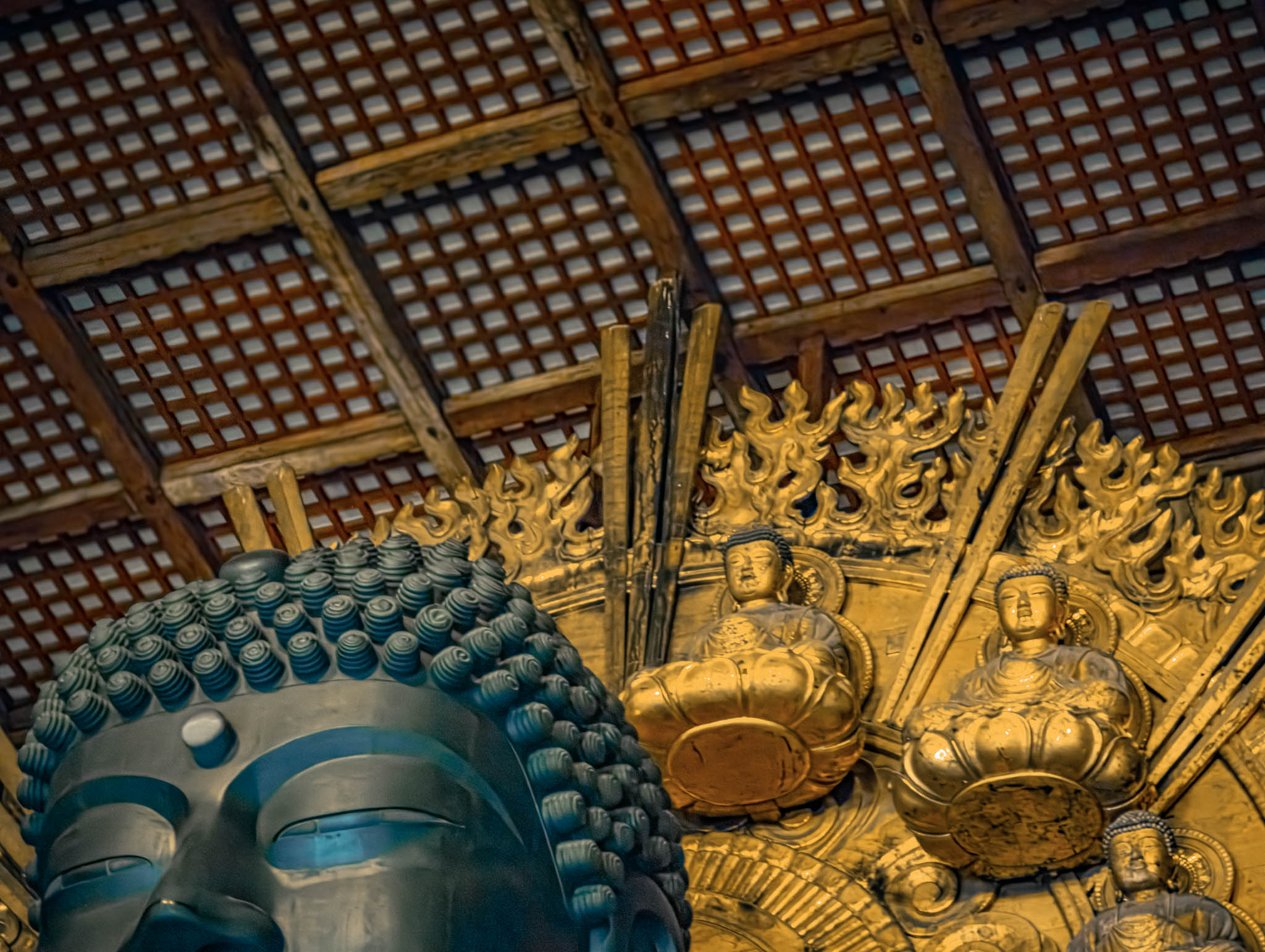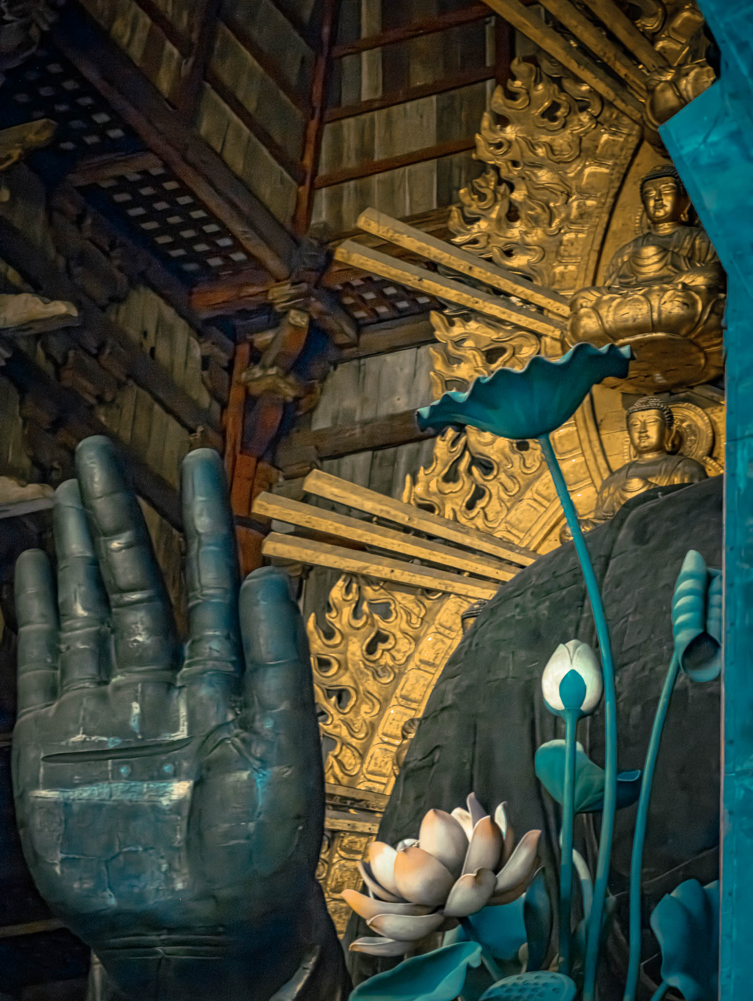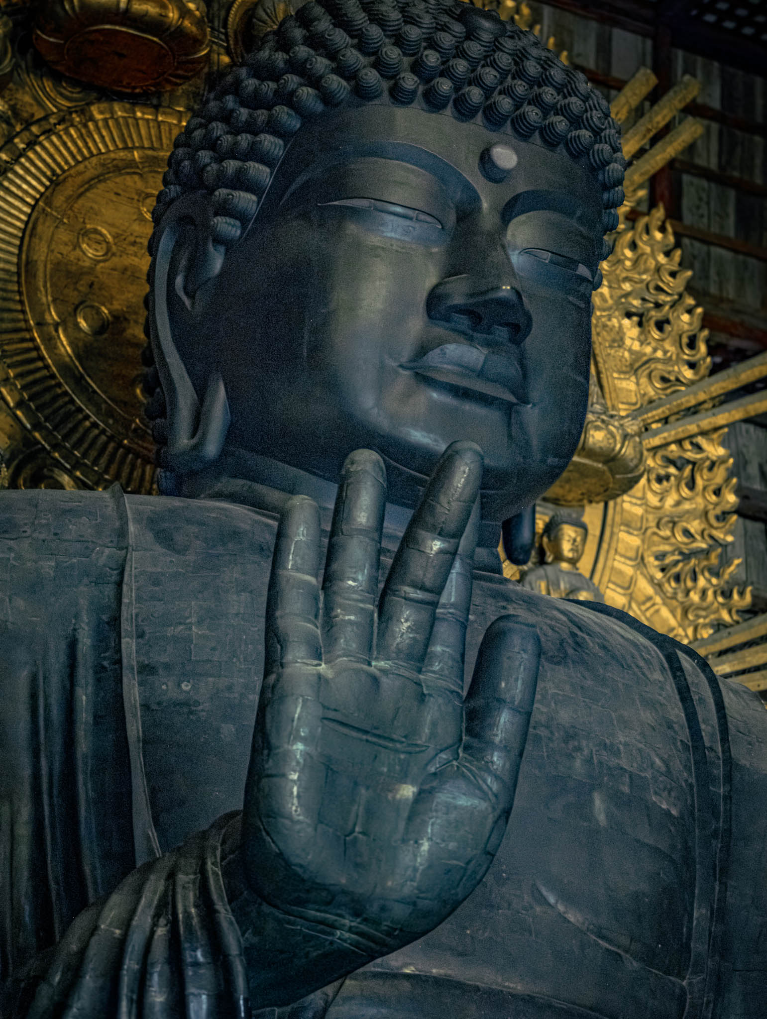 In any case, within the Daibutsuden there were also fewer visitors, nuisance foreigners or not, and so I had plenty of opportunity to circumambulate clockwise (with camera in hand, not a rosary) the Vairocana and his attendant double golden Kannons.