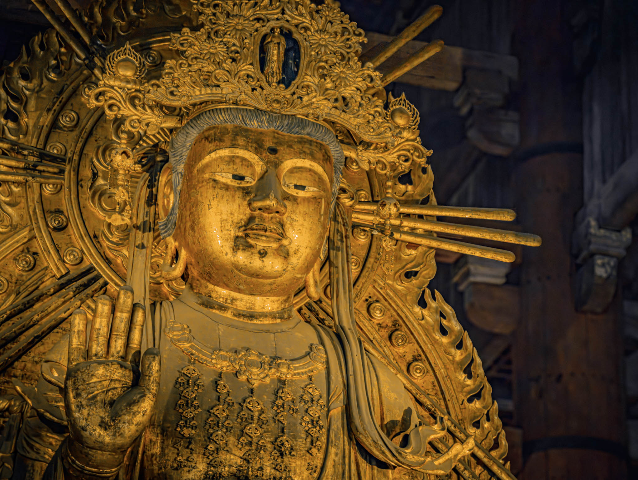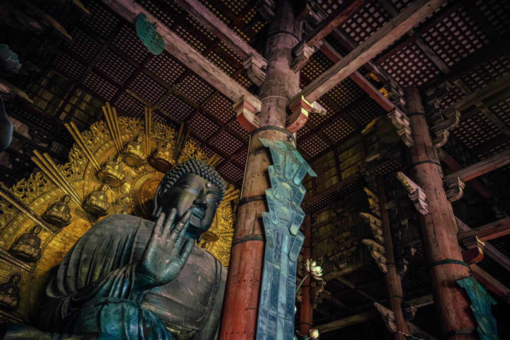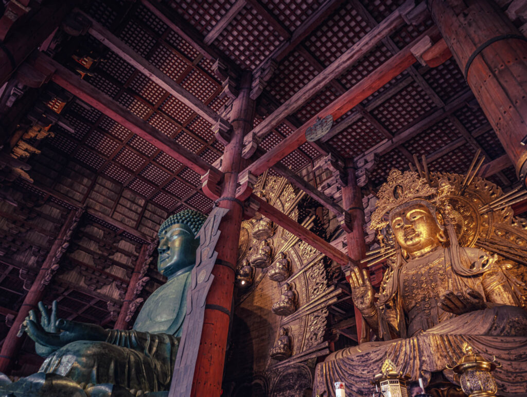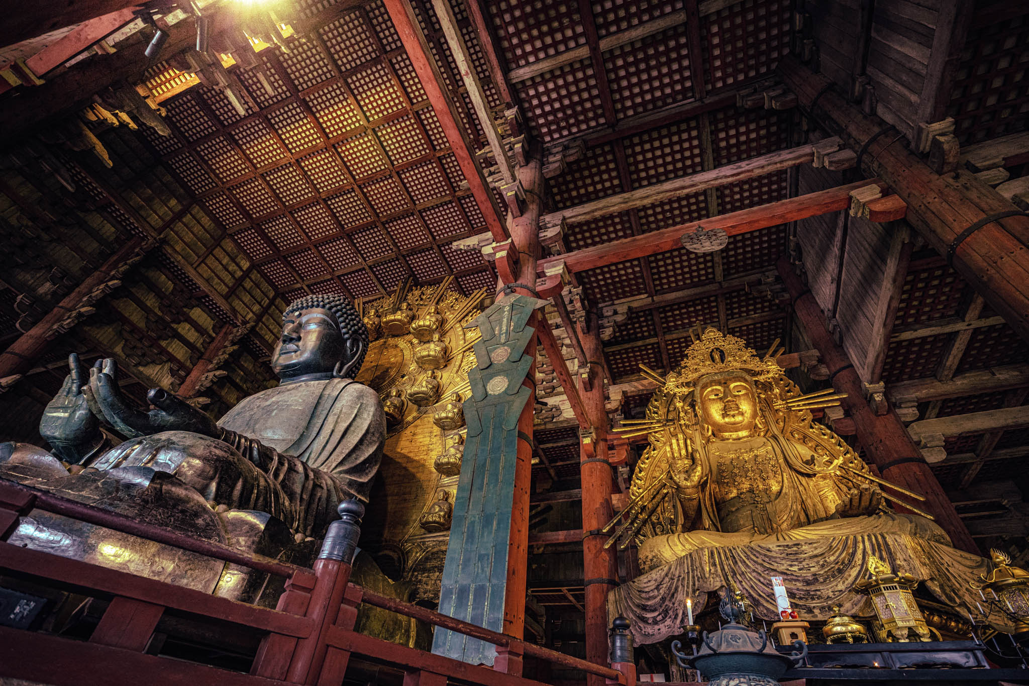 In any case, within the Daibutsuden there were also fewer visitors, nuisance foreigners or not, and so I had plenty of opportunity to circumambulate clockwise (with camera in hand, not a rosary) the Vairocana and his attendant double golden Kannons.