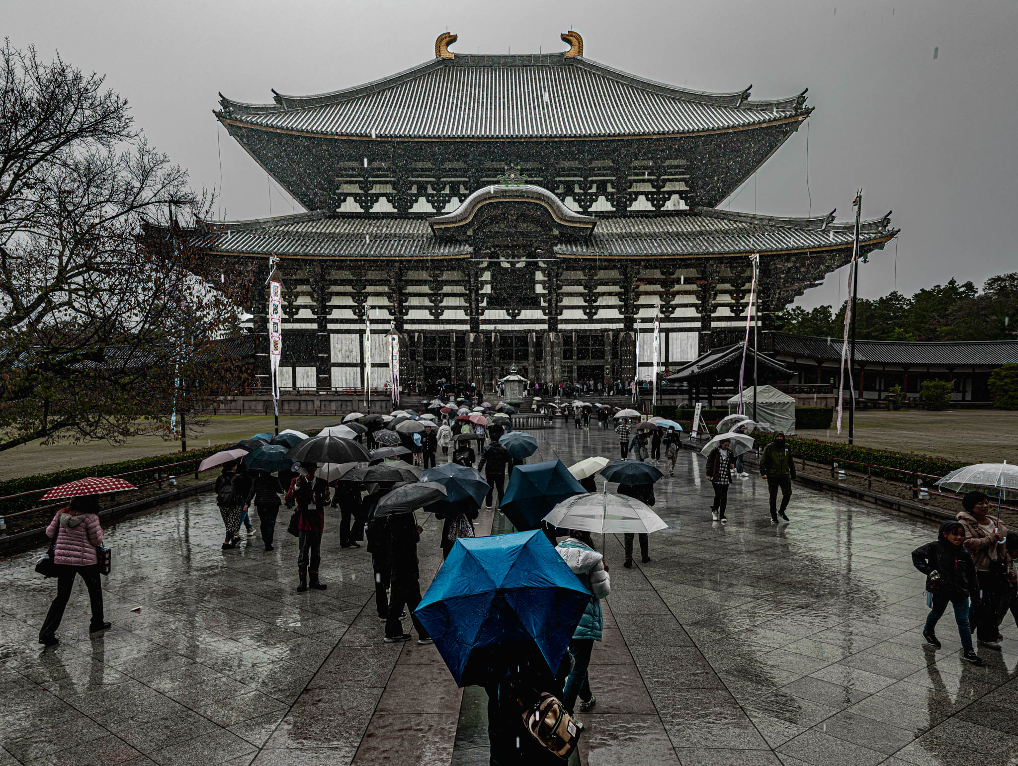 More damp and drizzle, less of the selfie-stick crowd — although I wonder often if in an ultimate sense I am any better than them (and thus less of a meiwaku gaikokujin) just because I know my Amidabutsu from my Birushanabutsu — as well as some basic rules of Japanese grammar.